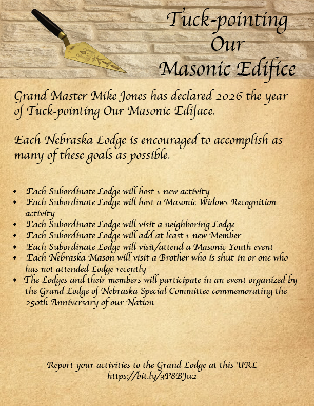 Warm Masonic greetings and welcome to our Nebraska Grand Lodge Website.